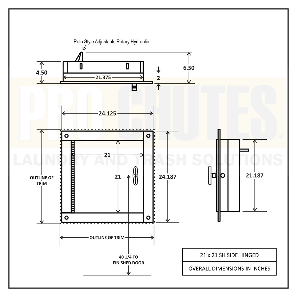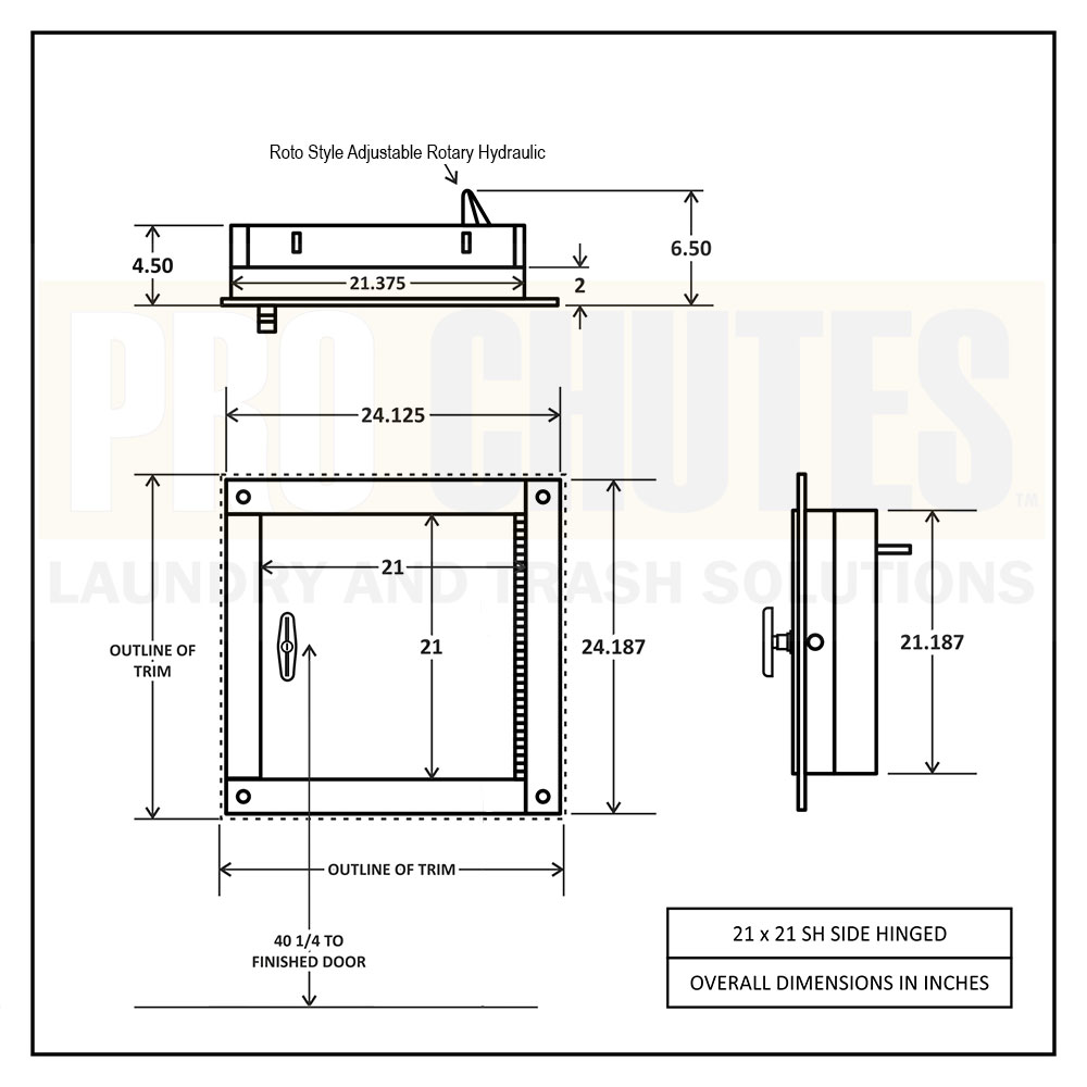 1) CHUTE / ROUGH OPENING: 21.375 inches wide by 21.187 inches tall opening.